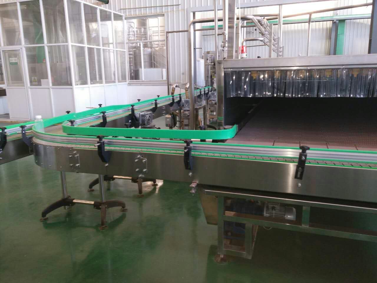 下圖為大連海升輸送彎道及超潔凈灌裝間現(xiàn)場(chǎng)安裝圖