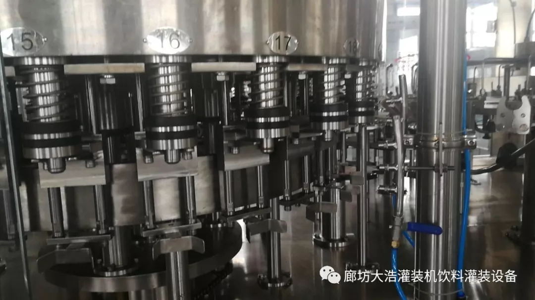 米祿產(chǎn)品是經(jīng)發(fā)酵后加米粒,混合均勻后灌裝,此設(shè)備為果粒和湯同時灌裝,該設(shè)備除洗瓶旋蓋外,在灌裝處經(jīng)過特殊設(shè)計,把加了顆粒的物料均勻的填充到瓶內(nèi),具有灌裝速度快,果粒均勻,灌裝液面平穩(wěn),灌裝閥的偏心設(shè)計,可做到滿口灌裝。